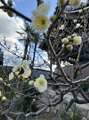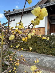 境内の白梅と蝋梅が咲き出しました。写真はありませんが紅梅も満開です。