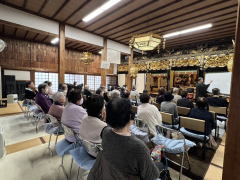成道会法座の様子です。奈良県御所市の冬野正隆先生にご法話いただきました。