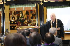成道会法座の様子です。大野孝顕先生の楽しいお話しに皆さん聞き入っておられました。