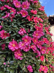 去年より大きく成長したハーデンベルギアです。木蓮が満開です。