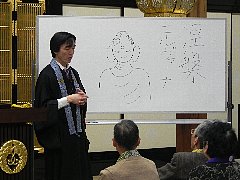 2月14日涅槃会法座、鍋島先生のお話に皆さん聞きいっておられました。